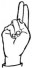 На ћирилици написано НЕМАЊА ТОМАСОВИЋ састоји се из 15 слова [?]. Исписано ћириличном једноручном азбуком за глувонеме: